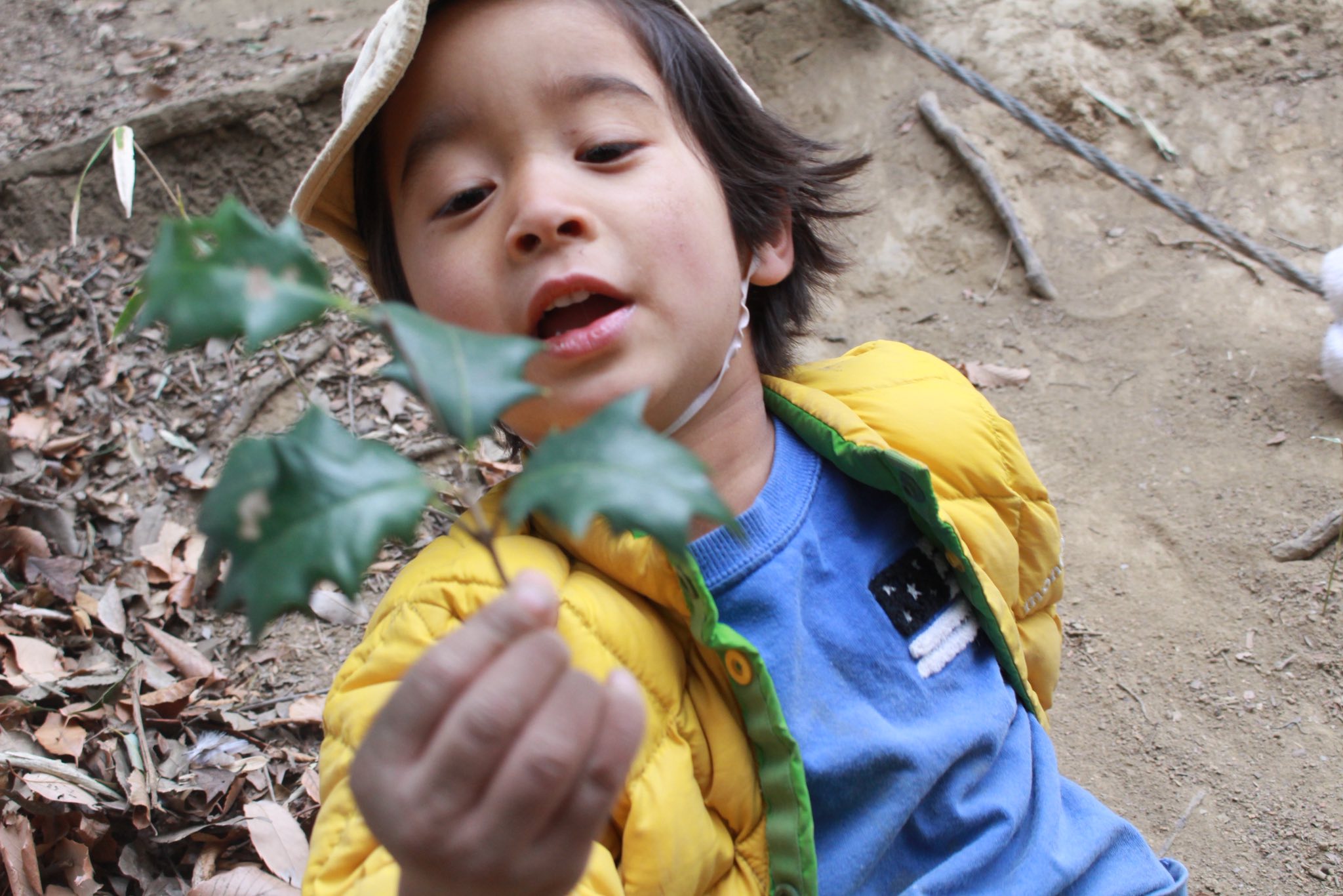 鬼退治!のヒイラギを、大きい子ぐみはさんぽで見つけてきました。