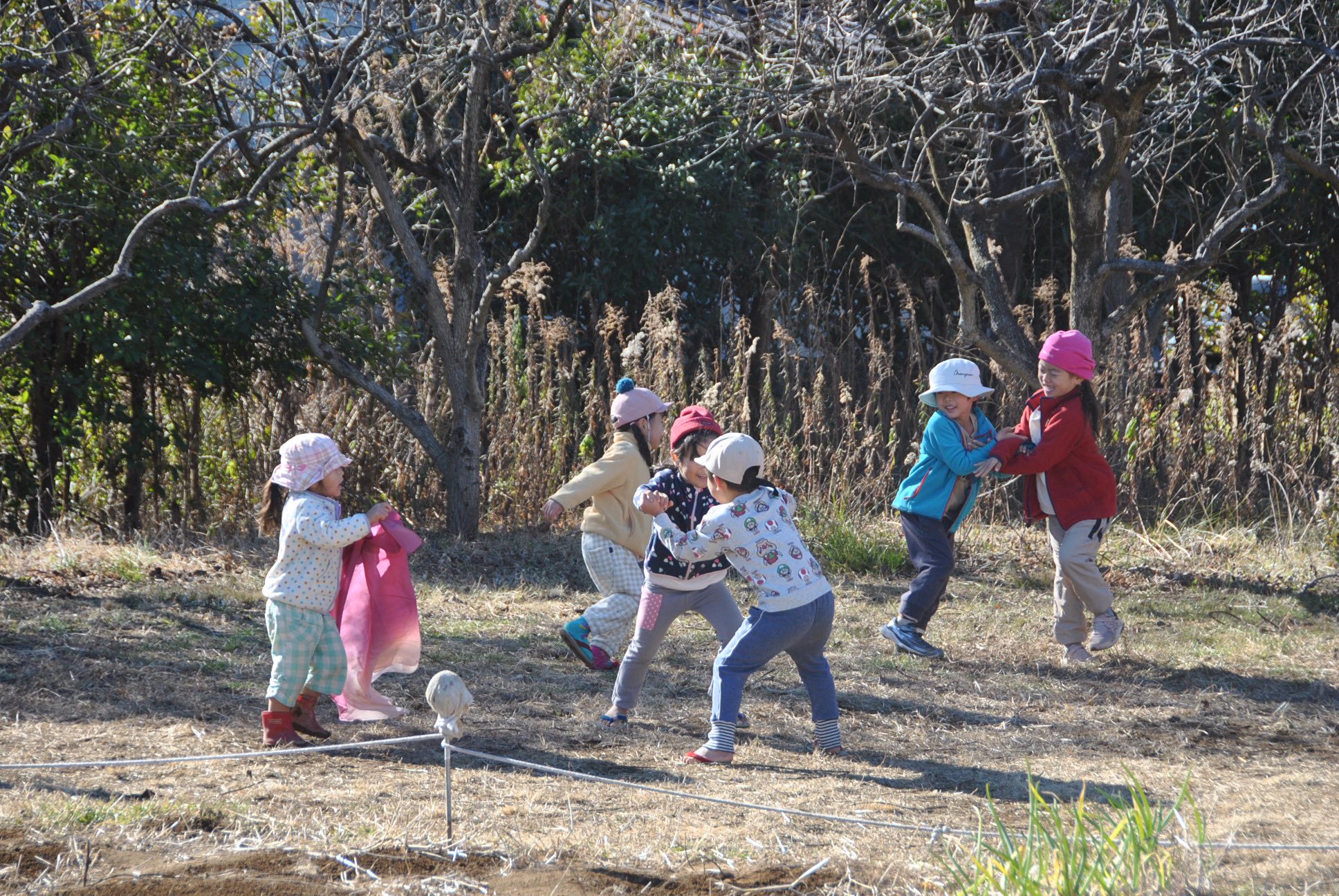 友だち同士何かおしゃべりし合って楽しそうな小さい子ぐみ。